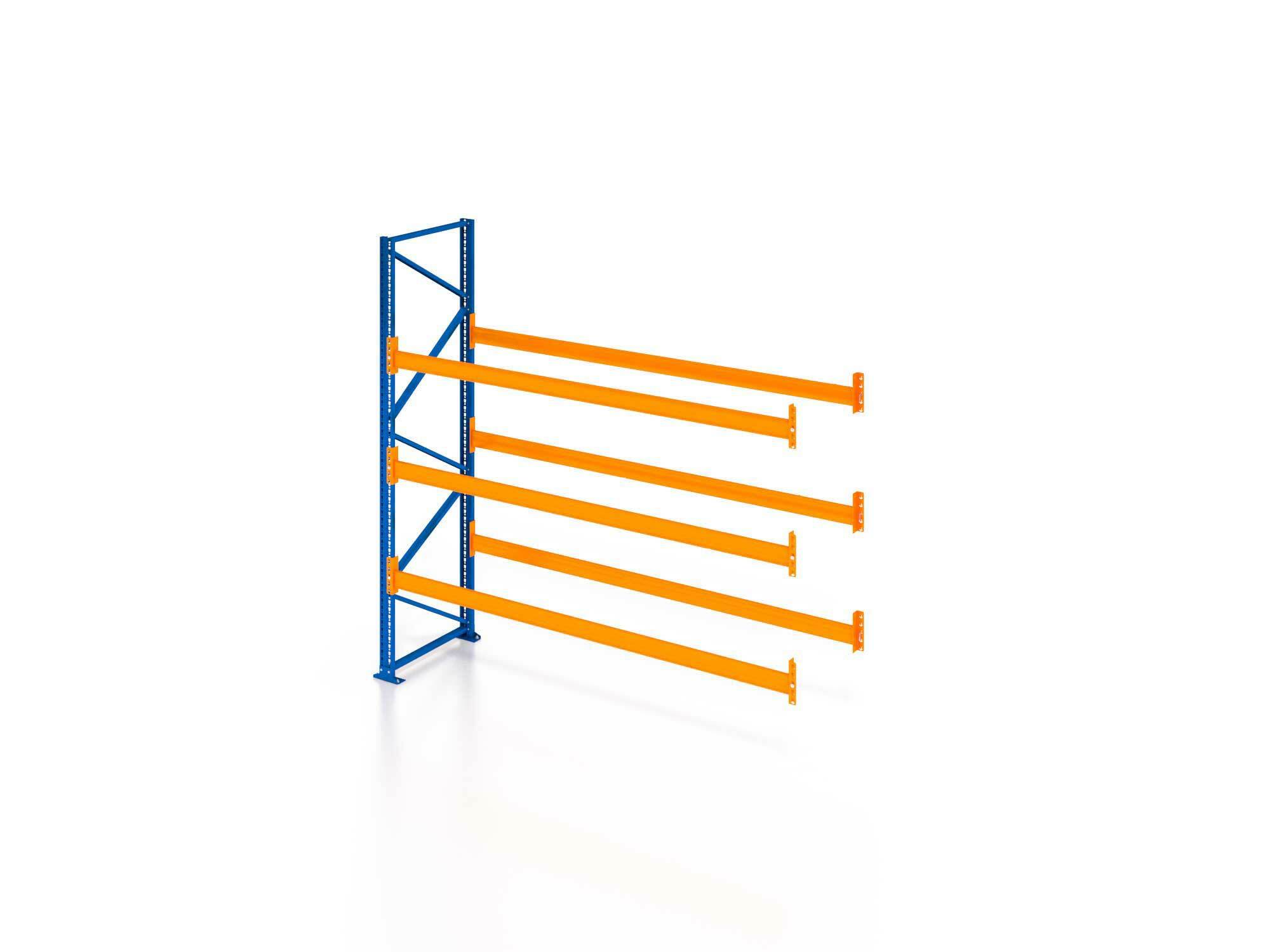 Palettenregal, Anbauregal, 4 Lagerebenen, H2500xB1825xT1100 mm, Fachlast 3000 kg, 8 Palettenplätze, Rahmen blau, Traverse orange