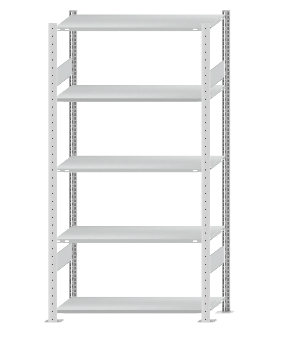 Bei Komplettregalen bis 3.000 mm Höhe werden T-Profile und Tiefenriegel standardmäßig in der Ausführung MULTIplus steckbar geliefert.